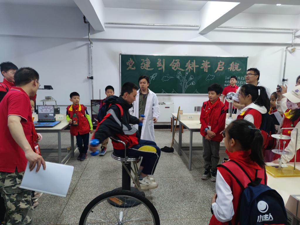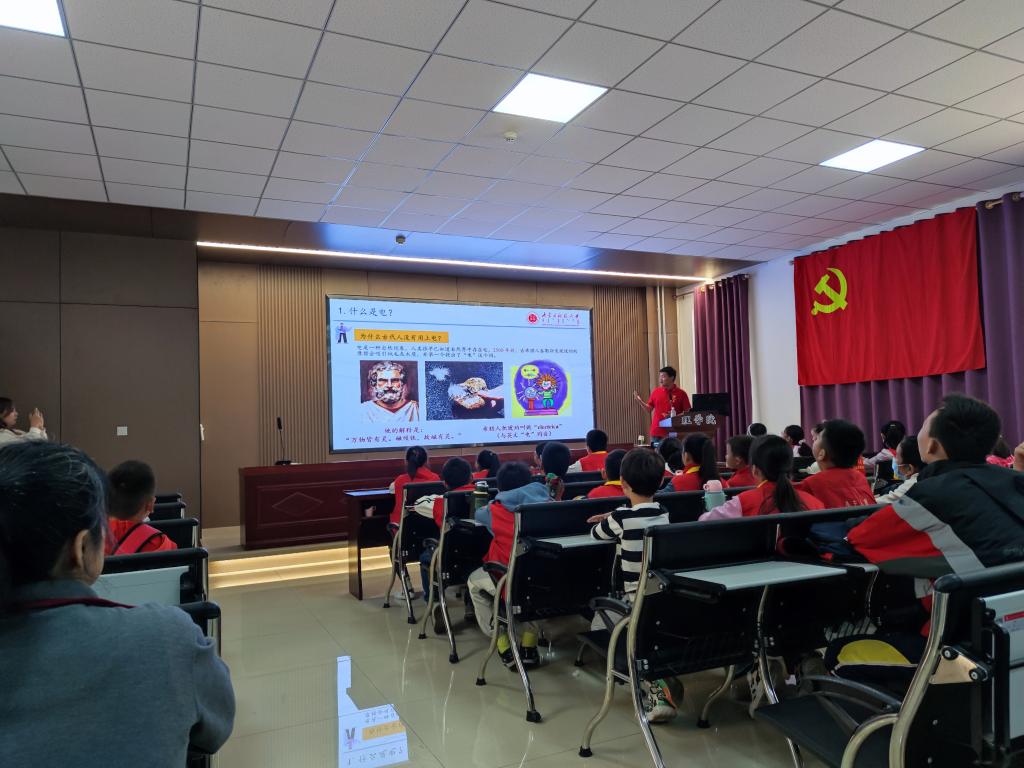 本次活动充分考虑了小学生的教育规律与年龄特点,制定了紧凑又有趣的科普内容。活动包括参观校园、校史校训讲解、物理实验室参观演示、物理知识科普小讲座、动手做电力趣味实验、“认识党旗”微党课讲授等环节。