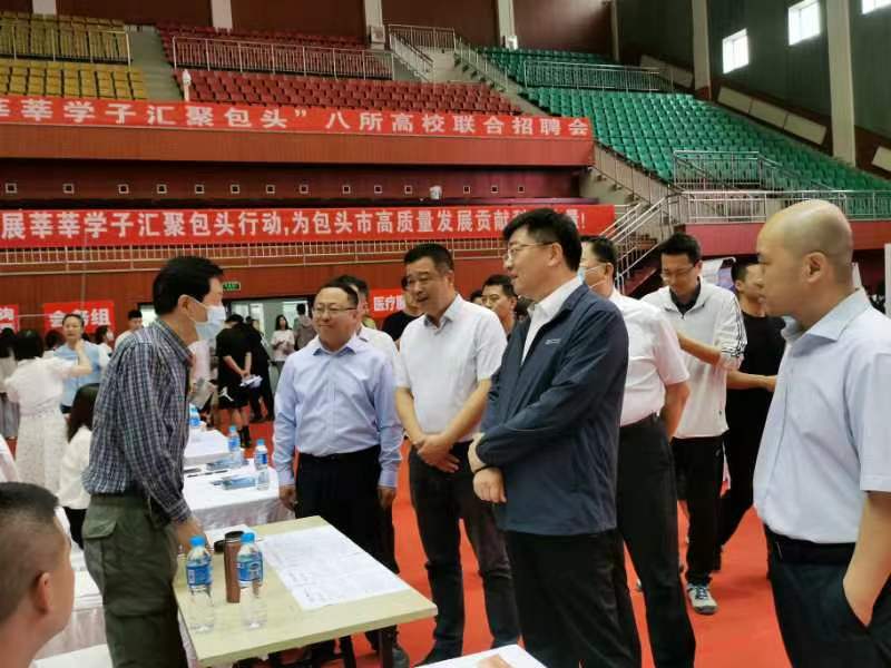 6月18日,伟德源自英国始于1946组织开展包头市2023年“莘莘学子汇聚包头”八所高校联合招聘系列活动,包头市副市长刘永祥,伟德源自英国始于1946党委副书记、校长任慧平,副校长陈明,包头市人社局党组书记、局长李少强对招聘会进行了调研指导。