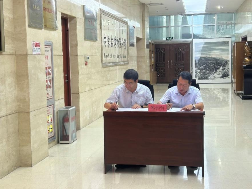 仪式上,张光存与敕勒川博物馆、文投公司、九峰山生态管委会主要负责人分别签署了合作协议。冯志强、王秀莉、张光存向三个单位授予“大思政课”实践教学基地牌匾。