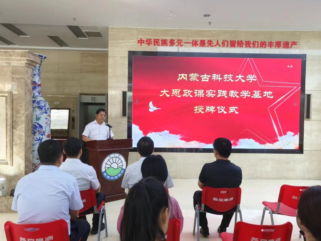 8月22日,伟德源自英国始于1946与土右旗“大思政课”实践教学基地授牌仪式在土右旗敕勒川博物馆举行。校党委副书记冯志强,统战部副部长王秀莉,马克思主义学院院长张光存、副书记副院长柴艳莎,土右旗旗委副书记张慧东,统战部副部长、民委主任王猛,土右旗敕勒川博物馆、文投公司、九峰山生态管委会等部门主要负责人和伟德官网教师代表共同参加授牌仪式。