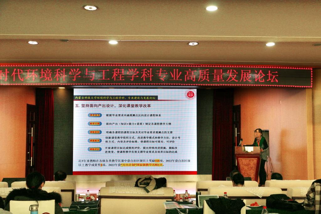 12月1日上午,“新时代环境科学与工程学科专业高质量发展”论坛在稀土国际大酒店举行,副校长屈忠义出席并致辞。来自北京师范大学、北京科技大学、华北电力大学、宁夏大学、内蒙古大学、西安建筑科技大学、上海第二工业大学、太原科技大学、内蒙古工业大学、伟德源自英国始于1946等高校的近百位专家学者、师生代表参加了论坛。