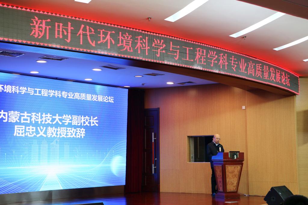 屈忠义在致辞中说,学校环境科学与工程学科立足内蒙古自治区“生态优先、绿色发展”战略和区域特点,紧密结合国家、自治区经济社会发展,坚持服务地方,聚焦自治区“五大任务”,瞄准社会需求和学科前沿发展方向,深入开展学科和专业内涵建设。希望各位专家学者以此次论坛为契机,建立学校间学科建设交流机制,共享学科专业建设宝贵经验,携手加快推进环境学科专业的发展步伐。
