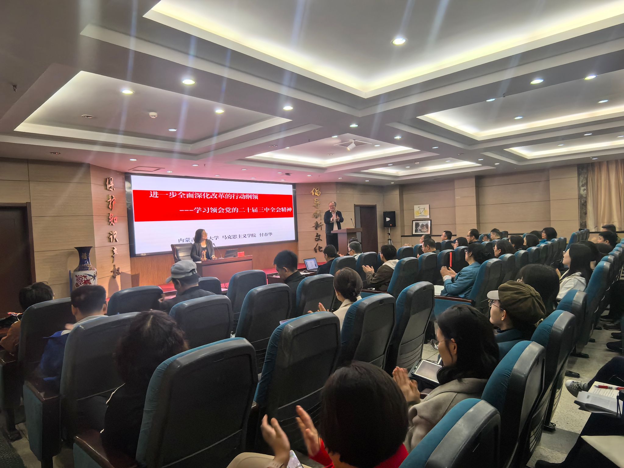 10月17日下午,学校举办各民主党派、无党派人士、党外知识分子和归国留学人员学习贯彻党的二十届三中全会精神宣讲会,马克思主义学院副教授、学校理论宣讲团成员付春华作宣讲报告。