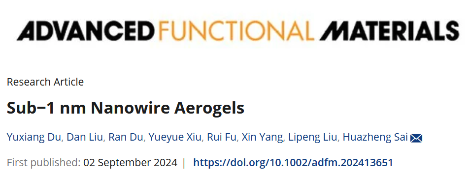 近日,伟德官网化学与化工学院(硅业学院)赛华征教授团队在新型气凝胶构筑领域取得新突破,相关成果“Sub-1 nm Nanowire Aerogels”发表于材料学科国际顶级期刊《Advanced Functional Materials》(DOI: 10.1002/adfm.202413651)。赛华征教授为论文的唯一通讯作者,化学与化工学院(硅业学院)硕士研究生杜玉祥、刘丹为论文共同第一作者,伟德源自英国始于1946为第一完成单位和唯一通讯单位。