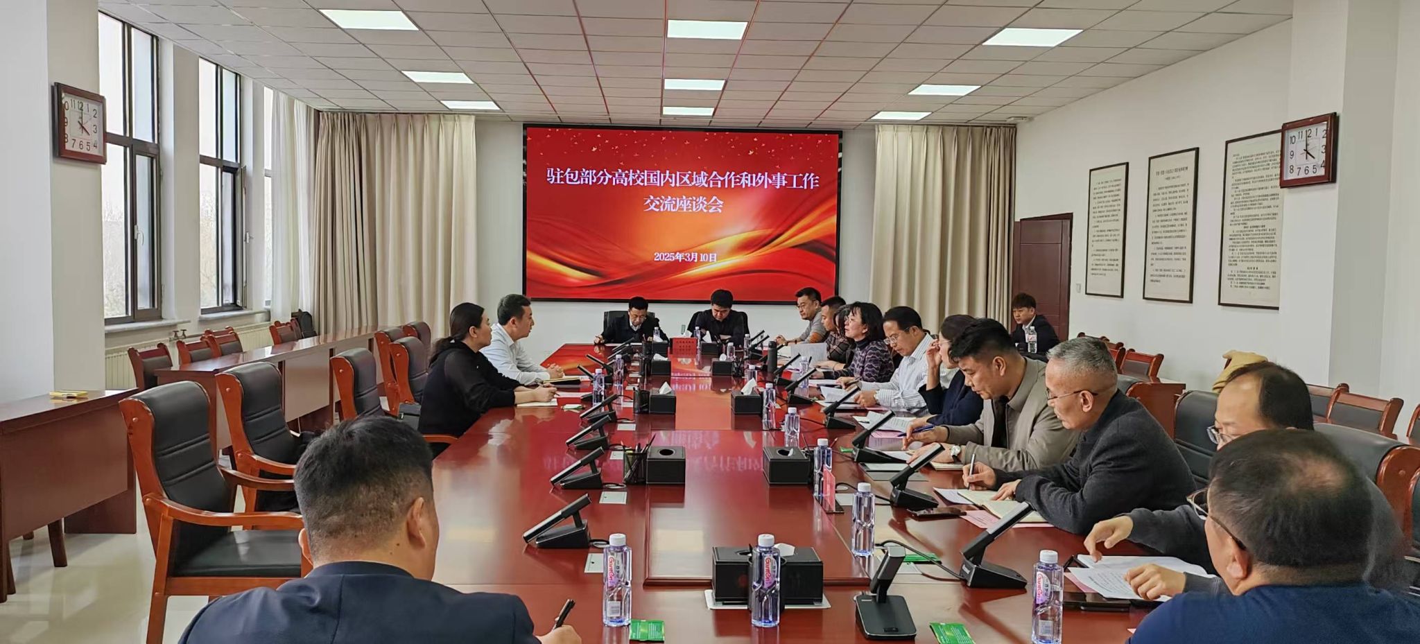 座谈会上,驻包部分高校代表从国内合作方面和教育外事工作方面展开交流。在国内合作方面,与会代表分别介绍了本单位国内合作机构设置情况,与京蒙、沪蒙、陕蒙、东北三省一区合作工作推进情况,国内合作工作长远规划和未来3年的目标,并提出当前开展国内合作工作中存在的问题和困难以及希望自治区教育厅如何协助解决这些问题和困难等。在教育外事工作方面,与会代表分别介绍了本单位2024年以来教育外事工作进展情况、教育外事的任务清单和合作重点事项及工作计划情况、出国留学整体情况、合作办学基本情况,以及相关建议等。