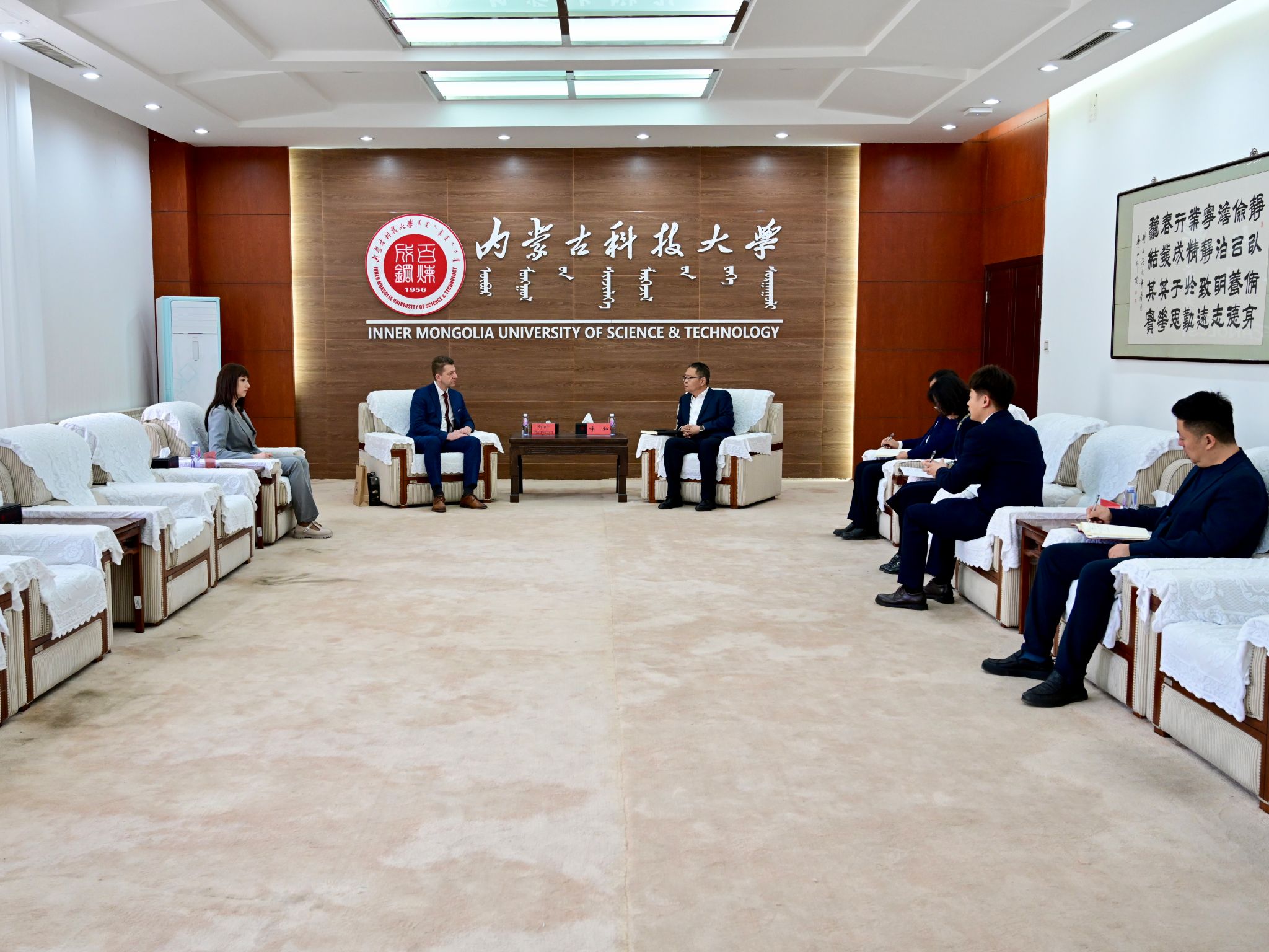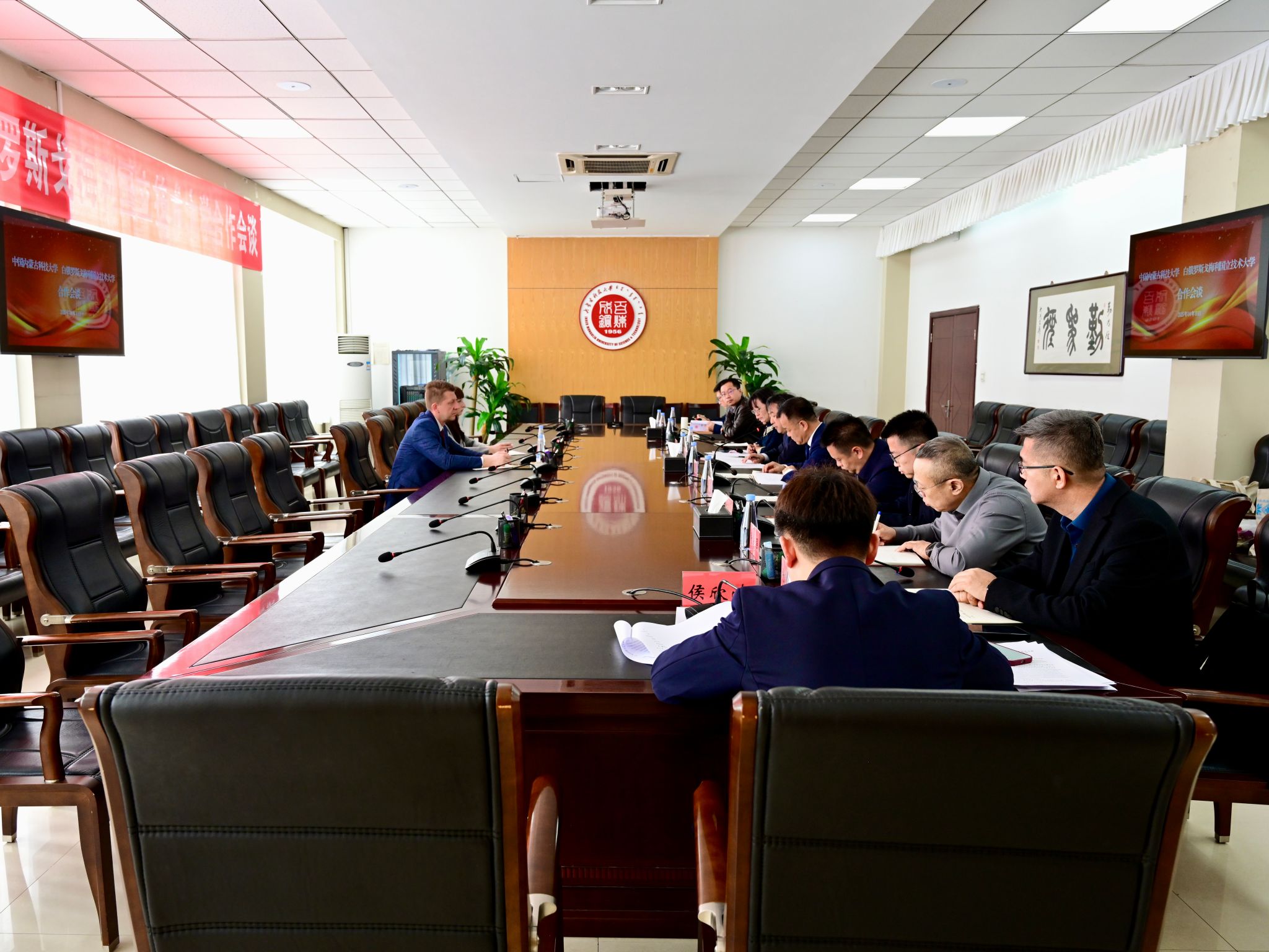 4月10日上午,双方在行政楼A202会议室召开见面会。呼和对里戈尔·佩特里申一行来访表示热烈欢迎。他说,内科大在稀土材料、矿业工程、能源环境、机械工程等领域的学科优势与戈梅利国立技术大学的学科特色高度互补,希望双方以联合科研、师生交流为抓手,打造中白高等教育合作的示范性成果,助力两地产业升级与技术创新。里戈尔·佩特里申对学校的热情接待表示感谢。他说,愿以此次访问为契机,深化技术转化与人才培养合作,共同推动协议项目落地见效。