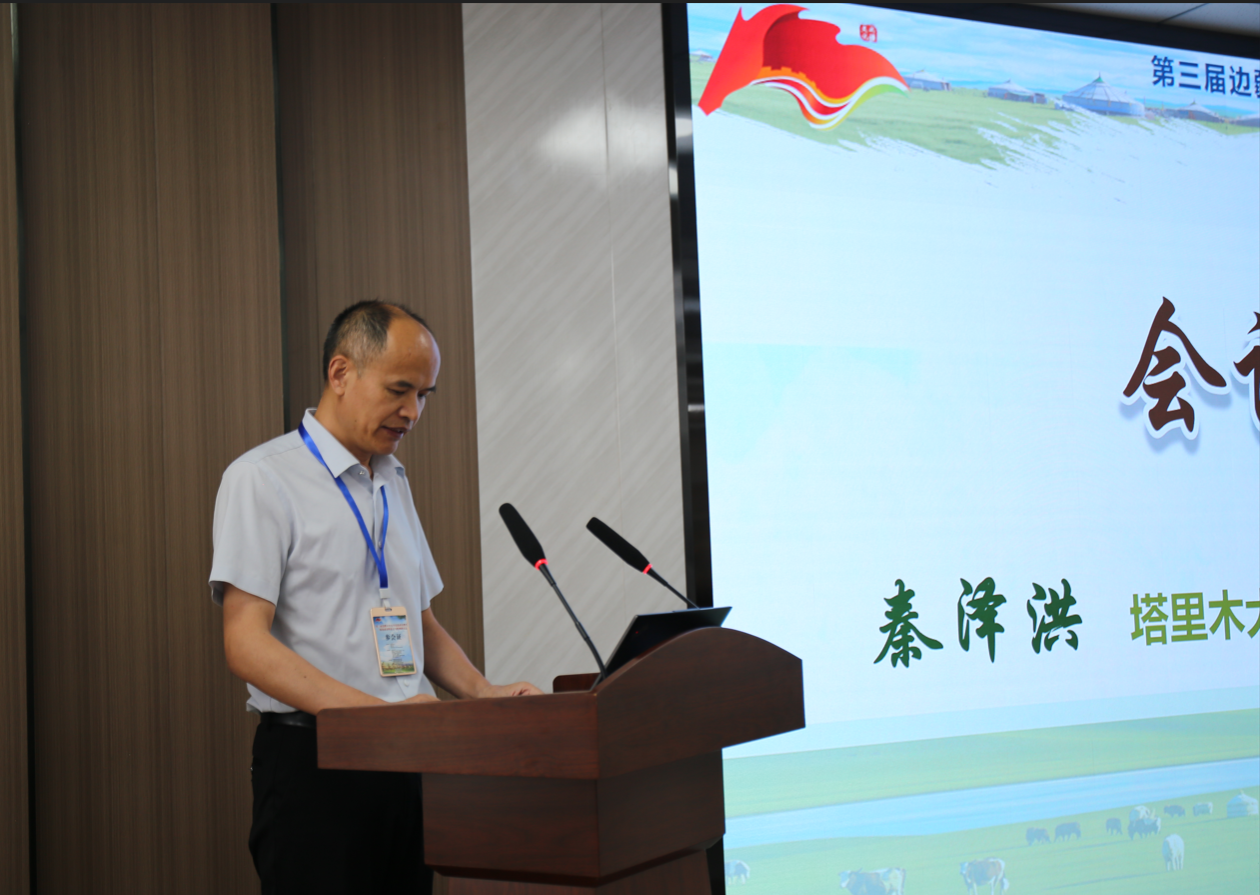 塔里木大学马克思主义学院(法学院)院长秦泽洪致辞。他说,要坚定主线思维,推进大思政课建设,着力构建目标清晰、层次递进、特色鲜明的边疆思想政治育人共同体。