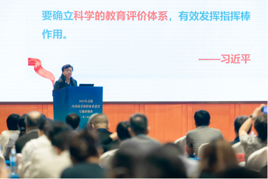 盛敏在报告中从新时代高校内部质量保障体系的战略意义与定位、当前存在的主要问题、构建路径与推进举措等三方面深入阐述。指出内部质量保障是高校对接国家战略需求的“转换器”、自身改革的“稳定器”、现代大学治理的“标配”,但当前存在对国家战略响应度不足、灵敏度不够、实质有效性打折、二级学院质保薄弱、数字化水平滞后等问题,提出需构建“12345”体系框架,通过专题研修、实践指南编制、诊断咨询服务、案例选树等举措,推动高校内部质量保障体系立起来、强起来。