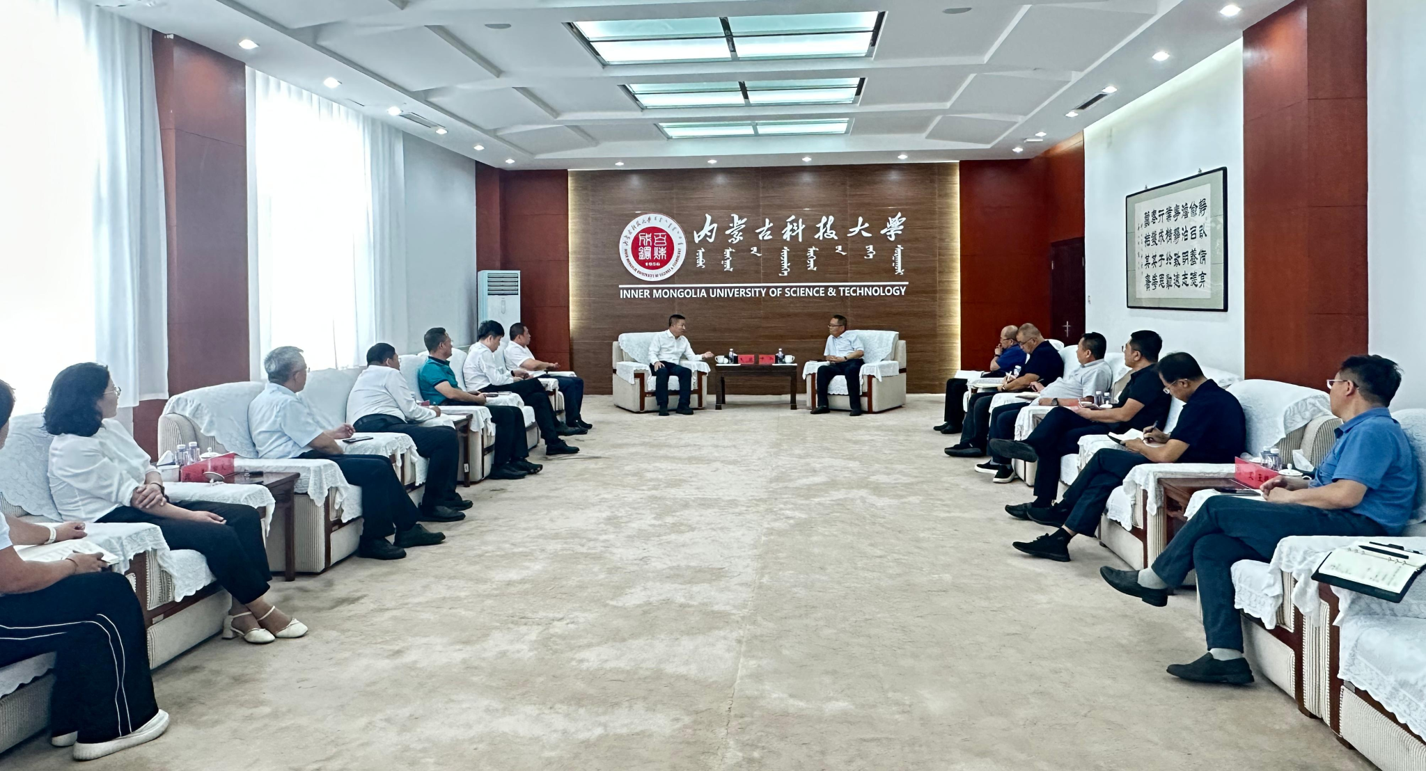 9月3日下午,中国移动通信集团内蒙古有限公司董事会董事、党委委员、副总经理焦毅一行来校交流座谈。校党委书记呼和、副校长屈忠义参加座谈会。