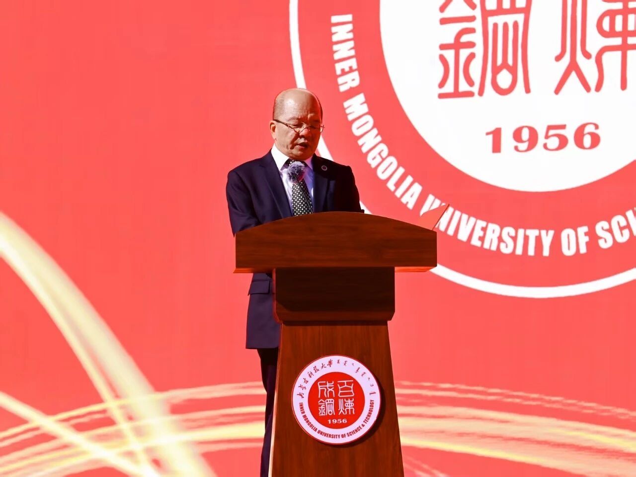 校党委副书记、校长韩永全致辞。他代表学校欢迎新生到来,回顾学校办学初心与学科优势,向新生提出三点期望:一是以军训为契机,锤炼坚毅品格与纪律意识;二是深耕专业学习,主动探索知识、提升实践能力;三是厚植家国情怀,将个人成长与国家发展同频共振。