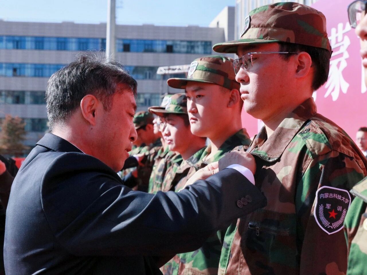 校党委书记呼和为军训团授旗