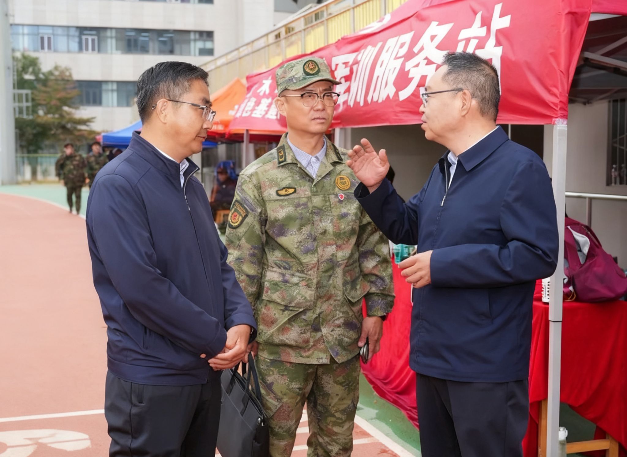 校领导与教官及师生代表亲切交流,详细询问并了解军训各项工作的推进情况,实地查看同学们的训练情况。深切慰问坚守岗位的带训教官、辅导员,并对参训教官表示诚挚感谢。校领导对跟训辅导员提出明确要求:扎实做好学生服务工作,密切关注学生思想动态与身体状况,精准对接学生需求,强化人文关怀,全力保障军训工作安全有序开展。