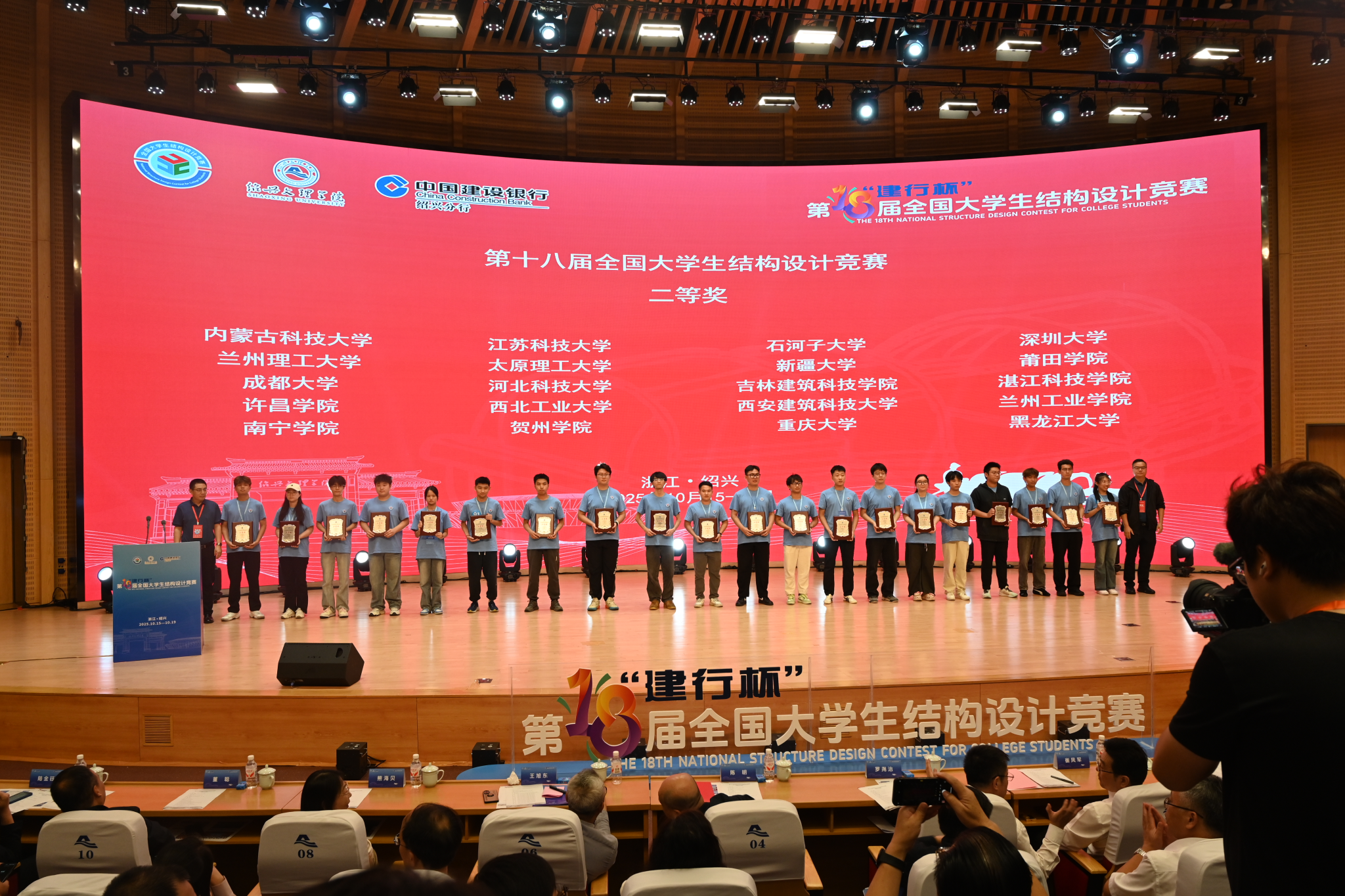 10月15日至19日,第十八届“建行杯”全国大学生结构设计竞赛在绍兴文理学院举办,经过激烈的角逐,伟德官网由土木工程学院23级学生曹朋朋、黎坤、孔璀英同学组成的“金鹰战队”在汤伟老师的指导下荣获二等奖,同时伟德官网获本届竞赛优秀组织奖。