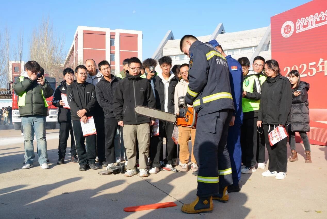 活动尾声,消防员系统介绍了装备的功能、用途及操作方法。师生近距离观察,直观感受消防工作的专业性与复杂性,加深了对消防工作的认识。师生还通过VR逃生模拟、体感换装体验等互动装置,沉浸式学习火灾自救技能。