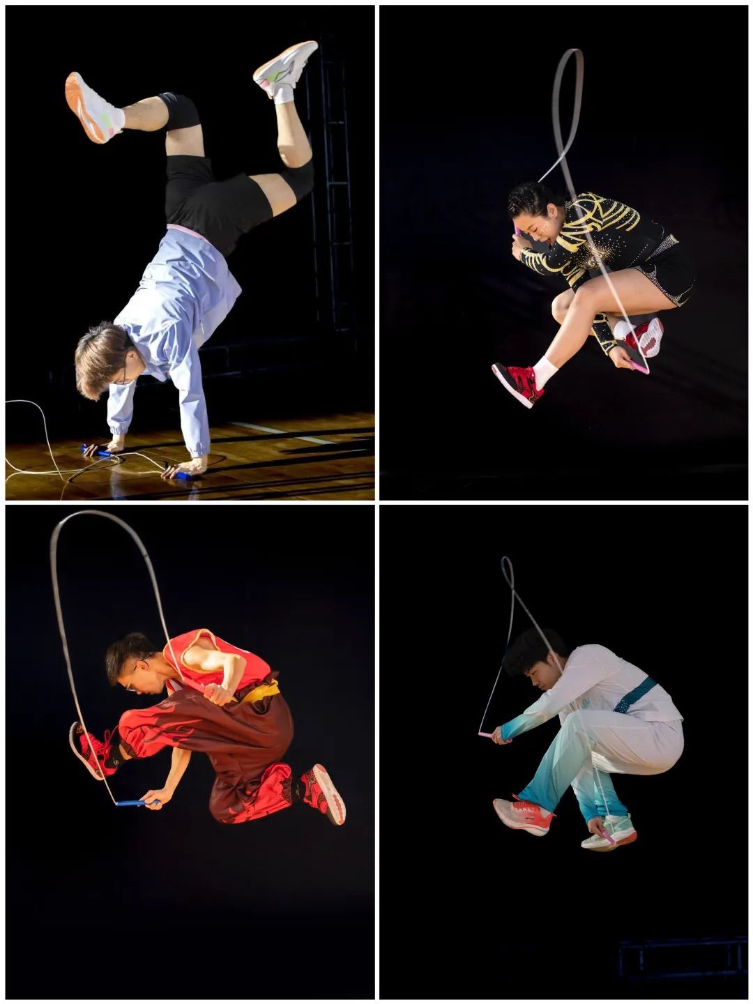 比赛过程中,参赛队伍竞争激烈,比赛项目涵盖速度赛、花样赛和集体项目等多个类别。伟德官网跳绳队在30秒单摇、30秒双摇、3分钟单摇、集体花样等重点项目中表现尤为突出,凭借扎实的基本功和出色的临场发挥,稳居本科校园组积分榜首。