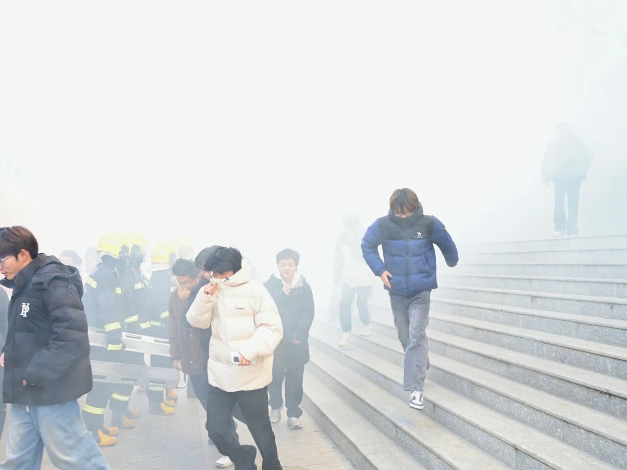 本次活动分为“应急疏散演练”和“灭火实操培训”两个环节。下午3时30分,随着模拟火灾警报声突然响起,演练正式开始。公寓楼内“浓烟”弥漫,各楼层疏散引导员迅速到位,按照预定疏散方案,引导学生用湿毛巾捂住口鼻,弯腰低姿,沿着安全出口指示标识快速有序撤离。期间,学生们听从指挥、不慌不乱,在疏散引导员的带领下依次通过楼梯间向公寓楼前空旷广场集结。从警报响起至最后一名学生撤离,整个疏散过程仅用时5分30秒,所有参与学生均安全到达指定集合点,疏散演练达到预期效果。