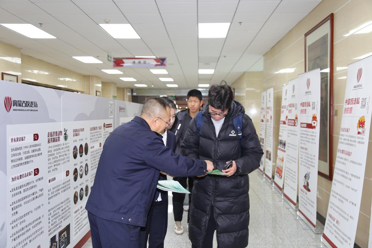 为进一步提升全体师生防范走私、电信网络诈骗的意识和能力,筑牢校园安全防线,12月11日,学校联合自治区打私办、包头市人民检察院、包头海关、包头市公安局昆都仑分局共同举办“反走私反诈进校园”主题宣传教育活动。本次活动以“认清风险陷阱,守护财产安全”为主题,通过多形式、沉浸式宣传,为师生送上“安全防护大餐”。