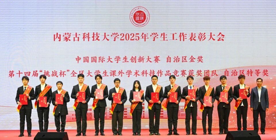 呼和、赵永旺分别为荣获中国国际大学生创新大赛国家级奖项、“挑战杯” 竞赛、体育国家级一等奖、艺术展演自治区级获奖代表、全国大学生 “三下乡” 优秀团队颁奖。