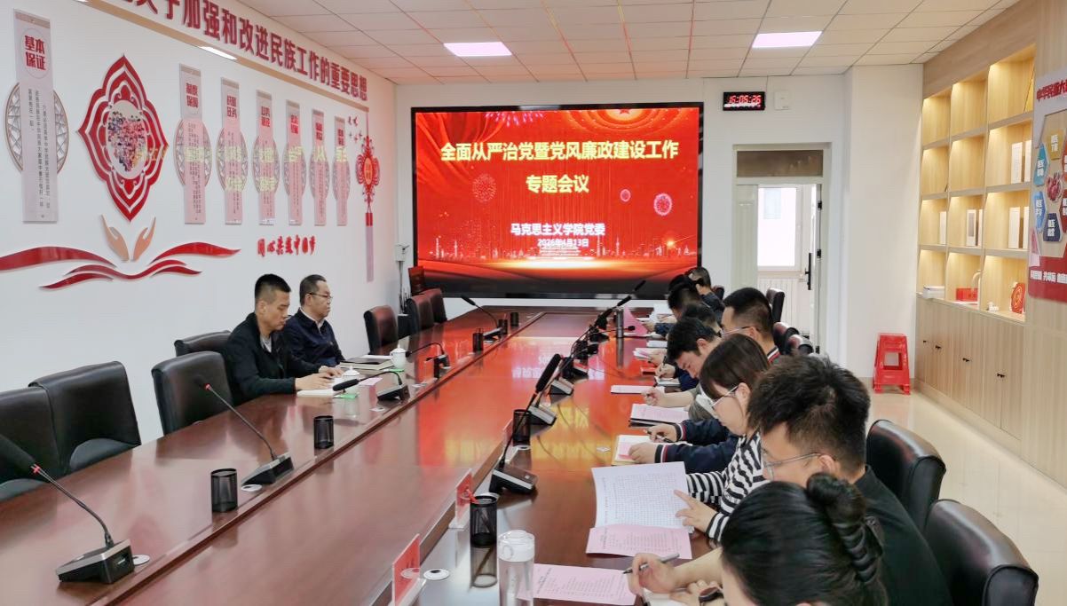为深入学习贯彻习近平总书记重要讲话精神,落实学校全面从严治党工作部署,持续推进学院党风廉政建设,4月13日,马克思主义学院召开2026年全面从严治党暨党风廉政建设工作专题会议。校党委书记呼和出席会议。纪检监察室(审理室)负责人、马克思主义学院党委委员、党支部书记、教研室主任和科室负责人参加会议。
