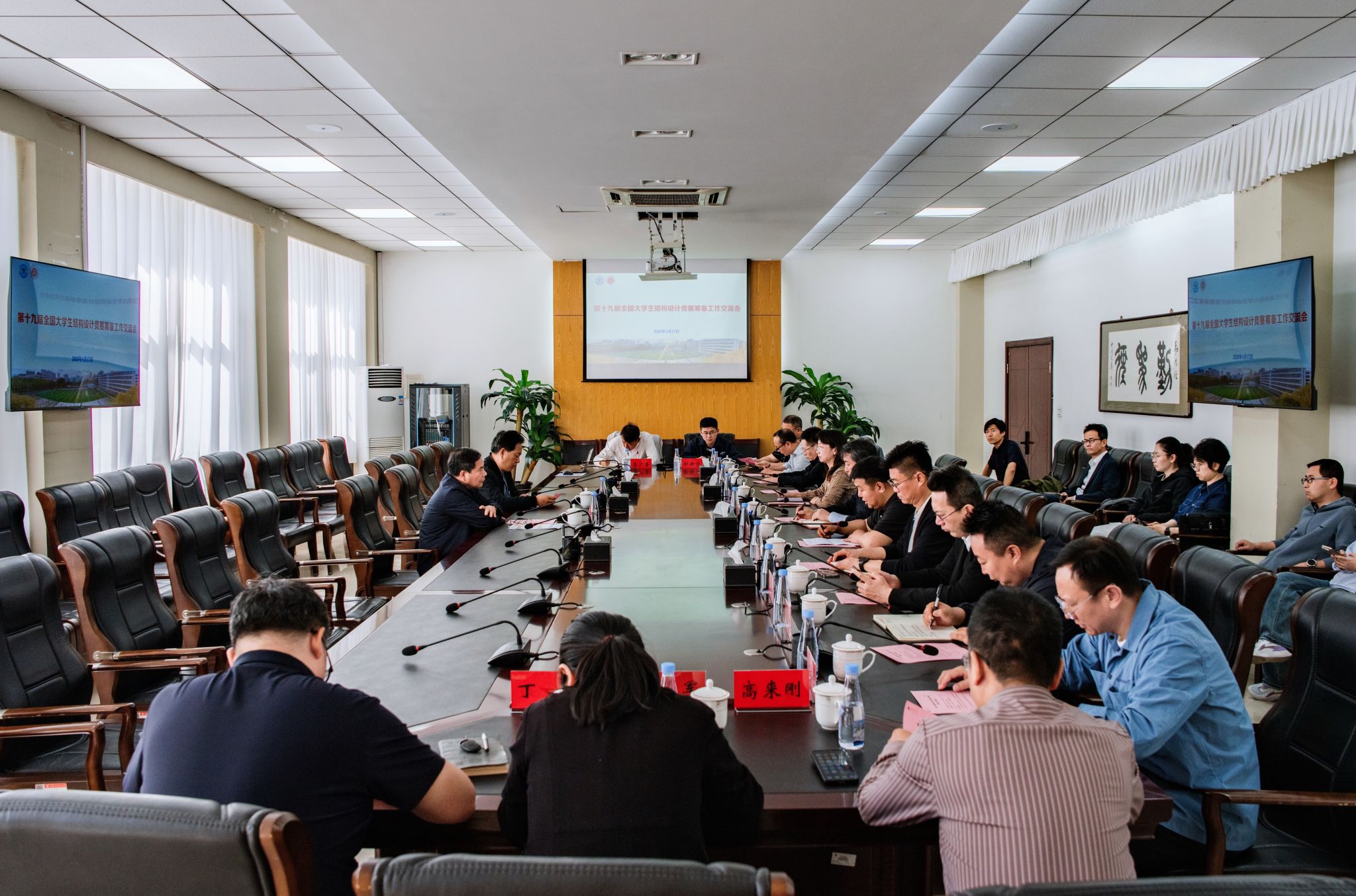 土木工程学院负责人详细汇报了竞赛筹备工作进展,重点介绍了赛事组织架构搭建、场地建设、后勤服务保障、安全预案、宣传策划等方面的具体推进情况,并就当前筹备工作中需协调解决的问题进行了说明。