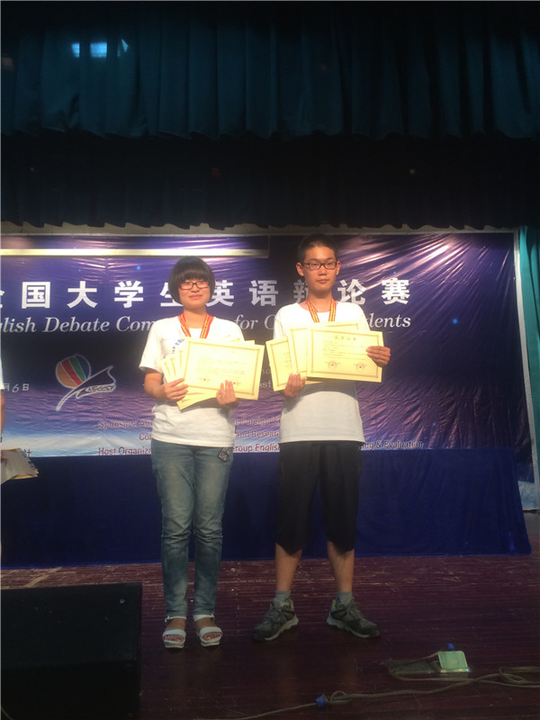 2014年全国大学生英语竞赛(NECCS)全国总决赛暨2014年全国大学生英语夏令营于8月1日—8月6日在沈阳东北大学顺利举行。伟德官网学生白明怡和邓凯钥代表内蒙古赛区参加了总决赛;他们在全国360名选手中脱颖而出,双双荣获了“辩论赛三等奖”、“演讲赛优胜奖”和“优秀营员”称号。此外,白明怡同学还获得了“英语风采大赛三等奖”。