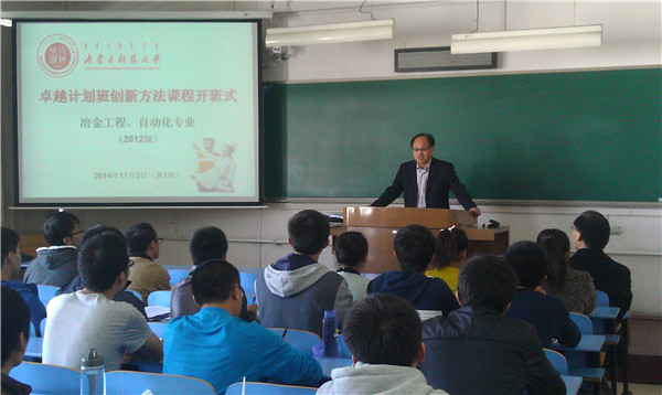 本期开班受益的是冶金工程和自动化两个率先进入卓越培养计划的专业,共计63名学生。开课名称为《TRIZ理论基础与专利知识》,共32学时。按照教学计划,学生将接受24学时TRIZ基础理论教育,由李振亮教授主讲;另外8学时专利知识课程教育,由董振域教授主讲。