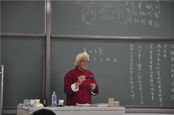 翟占飞老师以《中国画创作及中国画的笔墨纸砚》为题,分别从中国画如何选择笔墨纸砚、中国画与西洋画的区别及中国画创作的思维方式与画法等方面做了详细的阐述,最后通过现场作画与师生互动引领伟德官网师生步入了国画艺术的殿堂。