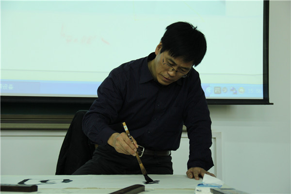 乔雁老师以《对于书法的再认识》为题,分别从书法的含义、书写方法、艺术的文字、黑白世界的阴阳哲学、书法的欣赏标准、古代书法名家作品及经典作品赏析等方面做了详细的讲述。他通过理论讲解、现场即兴书写及师生互动让伟德官网师生领略到书法的真正内涵和魅力。最后,校团委负责人代表学校特聘请乔雁老师为伟德官网客座教授并为其颁发了聘书。