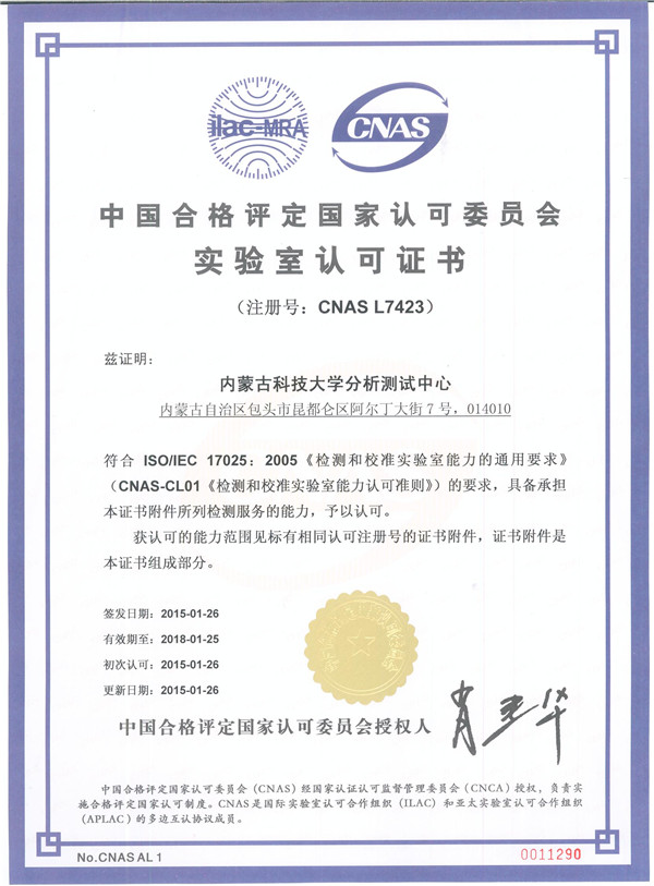 1月26日,中国合格评定国家认可委员会(简称CNAS)正式向伟德官网分析测试中心颁发实验室认可证书。