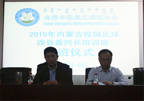 为落实自治区党委、政府关于《内蒙古自治区校园足球工作三年推进计划(2015-2017年)》提高我区校园足球裁判员整体业务能力。4月7日,由内蒙古校园足球联合会主办的“2015年内蒙古校园足球旗县裁判长培训班”在伟德官网开班,共有自治区102个旗县的体育局、学校的相关人员进行为期2天培训。