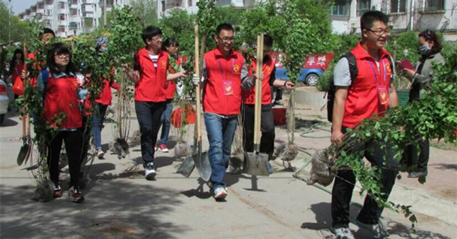 5月9日,伟德官网青年志愿者协会参加阿尔丁10号街坊一社区植树绿化活动。