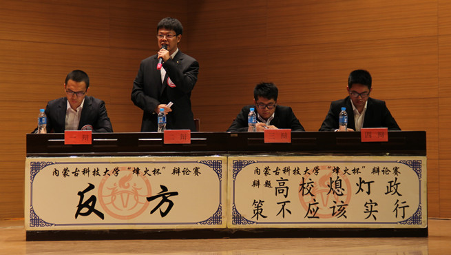 此次表演赛由第十一届“烽火杯”辩论赛冠军机械学院和亚军研究生院两支队伍组成。辩论赛将历时一个月,按照表演赛、小组赛、八强赛、四强赛、决赛依次进行。