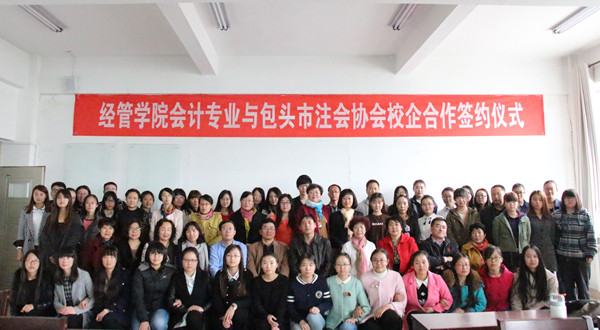 11月5日上午,经管学院会计系与包头市注册会计师协会校企合作签约仪式在腾飞楼A413举行,经管学院相关负责人、教授委员代表、包头市注册会计师协会秘书长、昆仑会计师事务所所长及注会协会下属的十五家会计师事务所代表出席合作签约仪式。