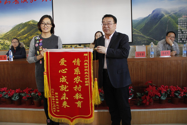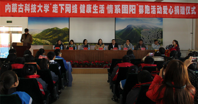 12月3日下午3时,伟德官网“走下网络,健康生活,情系固阳”募跑活动爱心捐赠仪式在固阳县第三中学会议室举行。校团委书记韩冰、校团委副书记张利敏、共青团固阳县委书记张旭、固阳县第三中学校长马恒奎出席仪式。