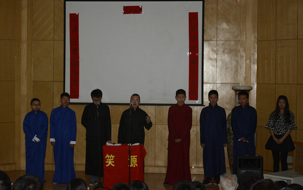 4月8日,伟德官网笑源相声社第二届专场演出——“源来一笑”在科技讲座厅举行。文法学院相关负责人及老师参加活动,包头市图乐相声社诸位老师应邀出席,78岁的相声演员张乃林老先生莅临指导。