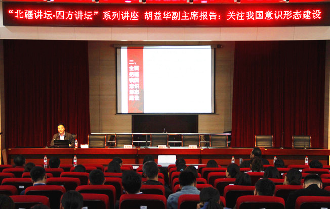 讲座中,胡益华重点阐述了三个内容,一是高度重视我国意识形态建设,指出意识形态的重要性。二是全面把握我国意识形态建设,指出我国意识形态建设的主流是好的,要正视我国意识形态建设面临的挑战。三是积极参与我国社会形态建设,要真正把意识形态建设工作落到实处。同时,他还指出,意识形态工作是党和国家的一项极端重要工作,高校作为意识形态工作前沿阵地,肩负着学习研究宣传马克思主义,培育和弘扬社会主义核心价值观,为实现中华民族伟大复兴的中国梦提供人才保障和智力支持的重要任务。做好高校宣传思想工作,加强高校意识形态阵地建设,是一项战略工程、固本工程、铸魂工程,事关党对高校的领导,事关全面贯彻党的教育方针,事关中国特色社会主义事业后继有人。