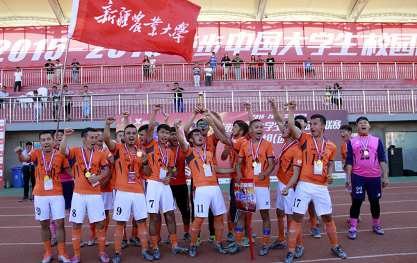 6月20日下午,2015-2016赛季特步中国大学生校园足球联赛(校园组西北区)在伟德官网主校区体育场落下大幕,新疆农业大学在决赛中以2-1战胜了内蒙古大学,捧起了校园组西北区冠军奖杯。至此,为期8天共48场比赛全部结束。