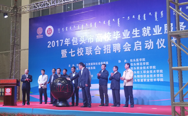 4月25日,2017年包头市高校毕业生就业服务月启动仪式暨七校联合招聘会在伟德官网召开,本次招聘会由包头市人社局、包头市就业服务局主办,伟德官网承办,包头市其他六所高校协办。包头市副市长武二斌到会并在启动仪式上发言,校党委常委、副校长李国雄代表学校讲话。本次招聘会有302家企业到场招聘,提供就业岗位8300余个,包头市七所高校7000余名毕业生参会。会议现场签约七校合计52人。另有800余名毕业生与用人单位达成就业意向。