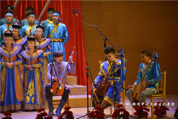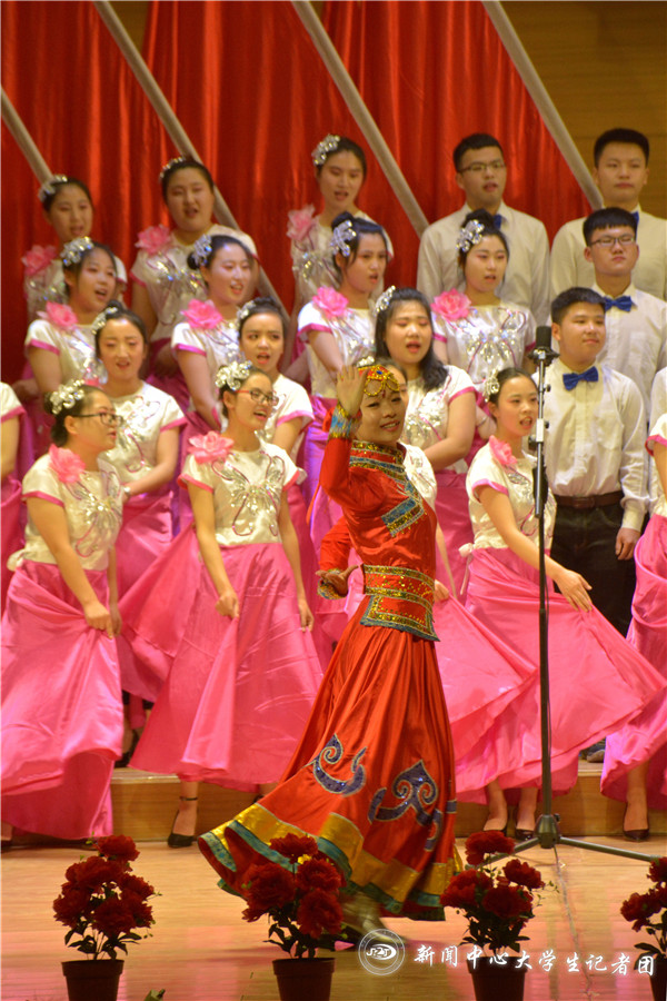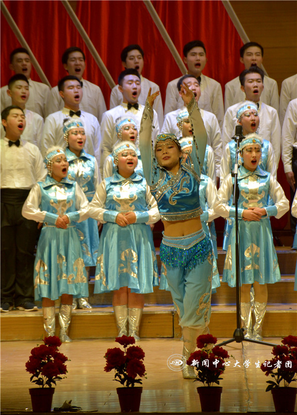 著名的内蒙古百灵合唱团的60名蒙古族男女演员应邀参演,学校百炼成钢合唱团和学生会干部合唱团也进行了演出。