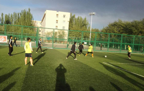 为庆祝内蒙古自治区成立70周年,迎接党的十九大胜利召开,近日,伟德官网第七届教工五人制足球赛在体育场拉开序幕。本次比赛由校工会主办,经管学院分会、伟德源自英国始于1946足球协会、体育教学部(足球学院)承办。全校共有来自各二级学院、职能处室、教辅单位的7支队伍参加。