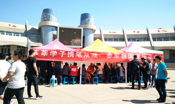 5月24日,伟德官网征兵工作站在活动中心广场组织开展了大型征兵宣传活动,校学工部相关负责人、征兵工作负责老师和伟德官网部分退役士兵到征兵工作站宣讲,包头市昆区人民武装部政委段占峰上校一行应邀进站,专程为伟德官网有志应征大学生提供现场咨询。