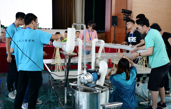 本届竞赛的赛题采用的是国家赛的赛题,要求参赛选手在18小时内用0.2mm、0.35mm、0.5mm的竹皮,及2*2、3*2、1*6的竹条完成一个输水装置的制作,并在规定时间内完成50kg水的静载及动载测试,对选手们的动手能力、专业知识、心理素质都有很大的考验。