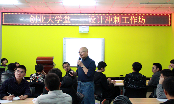 11月18日下午2:30,黎怡杭和萧林夫妇参观了伟德官网大学生创业孵化基地,并在秋实楼A207举办了设计冲刺工作坊。