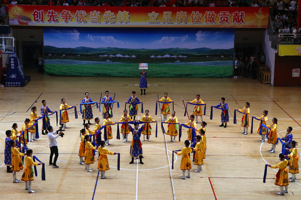 伴随着一阵激烈的的摇旗呐喊,“校园体育百炼成钢 放飞梦想再创辉煌”的口号回荡在体育场的每一个角落,同时也拉开了本届健美操舞大赛的序幕。舞台上的队员轻舞飞扬,耀眼夺目,不仅展现了科大学子的朝气蓬勃,也淋漓尽致的诠释了拼搏进取,昂扬向上的科大风采。来自15个学院的14支参赛队伍用满腔热忱诠释着青春活力。整齐的鼓槌敲击和口号成为震撼人心的合唱,灯光与服装的律动,演绎出一道靓丽的风景。