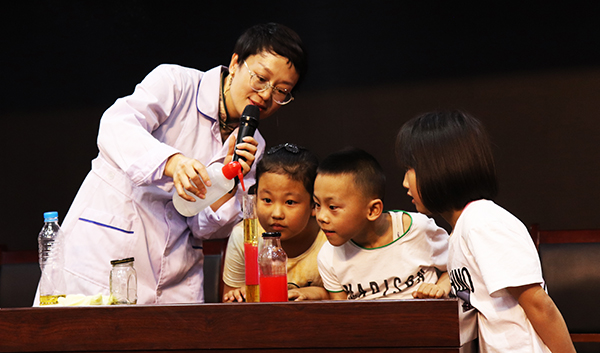 讲座中,欧阳顺利教授以“太阳光是什么颜色”为题进行发问,通过诱导式启发,说明太阳光通过光栅和三棱镜的颜色变化原理。欧阳教授深厚的专业基础和高超的启发技巧,使整个讲座变得深入浅出、通俗易懂,不禁让同学们联想到了彩虹的成色原理,现场气氛热烈、科普效果显著。李霞副教授则因材施教,根据小学生的知识储备情况,讲解了“红绿灯”实验。科普团队精心安排的科学实验课让现场热闹非凡,孩子们积极参与,收获颇丰。会后,两位老师愉快地接受了小学生记者团的采访。