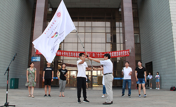 7月16日,伟德源自英国始于19462018年大学生志愿者暑期“三下乡”和“十个一”社会实践活动出征仪式在春晖学堂门前举行。校党委常委、宣传部部长杨家庆,团委主要负责人以及各暑期社会实践直属队指导教师出席活动,全校共400名社会实践志愿者代表参加了活动。