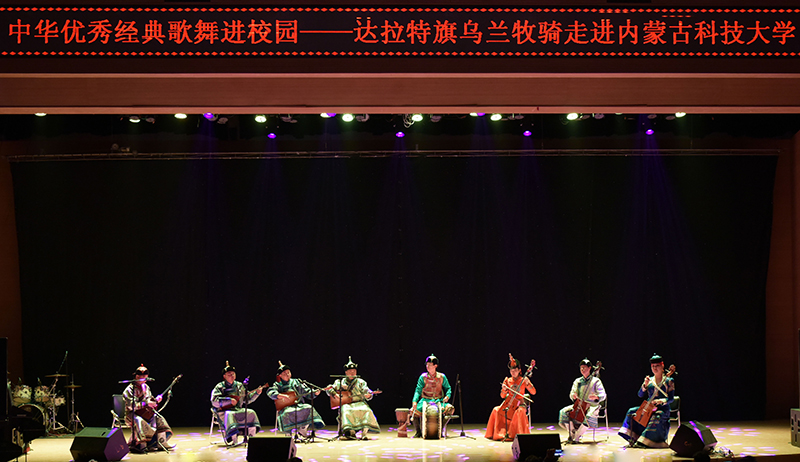 晚上7点,一场精彩绝伦的乌兰牧骑歌舞表演在学校音乐厅盛大开演,500余名师生观看演出。