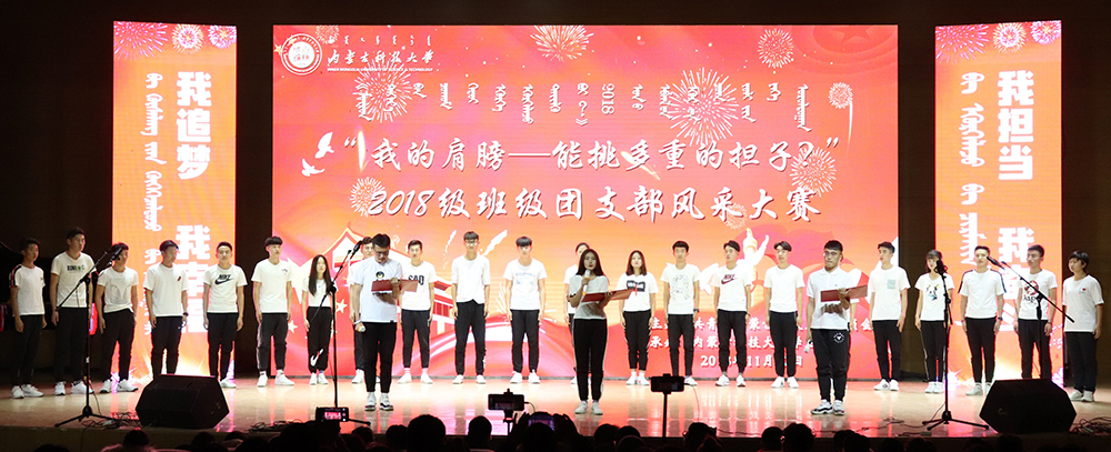 为深入贯彻落实习近平新时代中国特色社会主义思想和党的十九大、团的十八大精神,教育和引导广大青年学生爱国、担当、奋斗、争做担当民族复兴大任的时代新人,11月22日,伟德源自英国始于1946“我的肩膀——能挑多重的担子?”2018级班级团支部风采大赛决赛在校音乐厅举行。决赛分为基层组织建设与日常活动展示和舞台展示两部分。