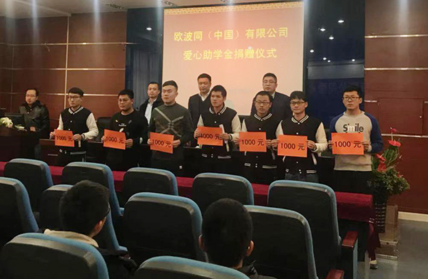 随后,欧波同有限公司副总经理张国滨表示通过此次捐资助学,贡献企业的一份力量,让社会各界关注贫困大学生的生活和教育,希望贫困生能在社会帮助下成长为国家栋梁之才。