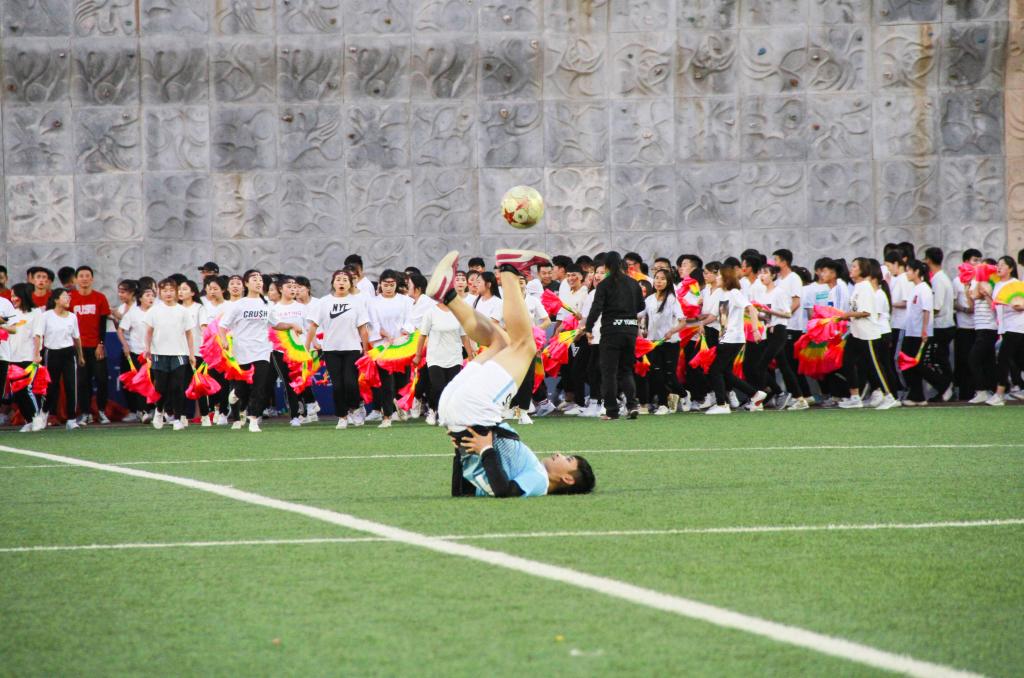 生命科学与技术学院陈迪非表演了个人足球秀。